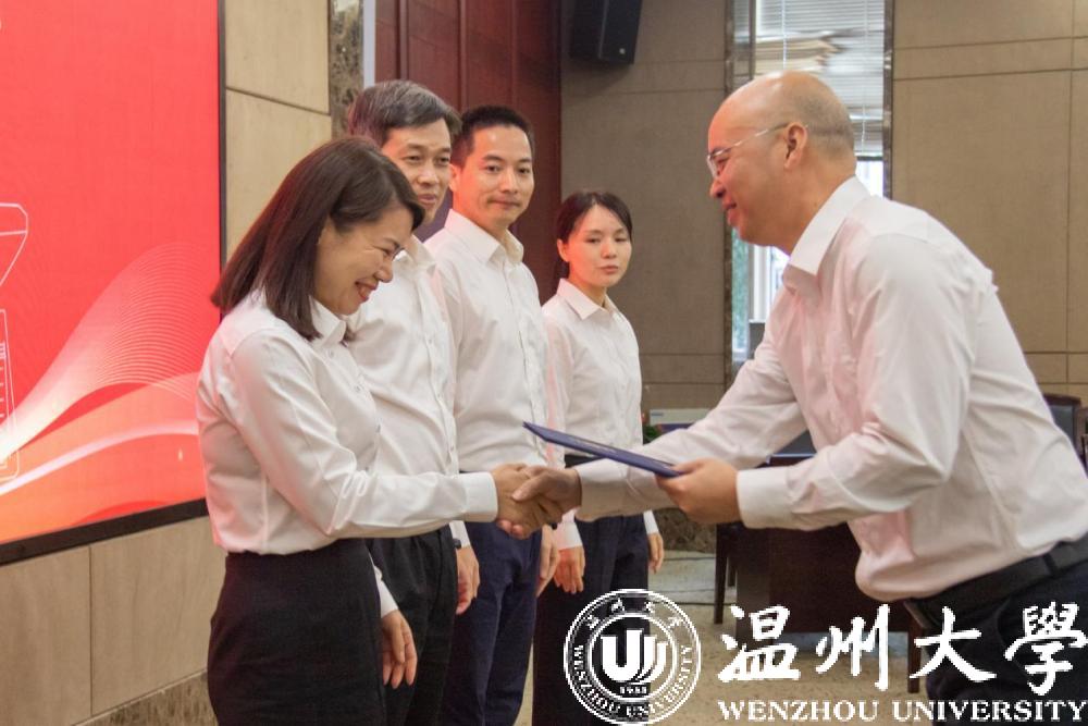 香蕉视频 法学院院长王宗正为温州市中级人民法院、温州市人民检察院的实务导师代表颁发聘书。