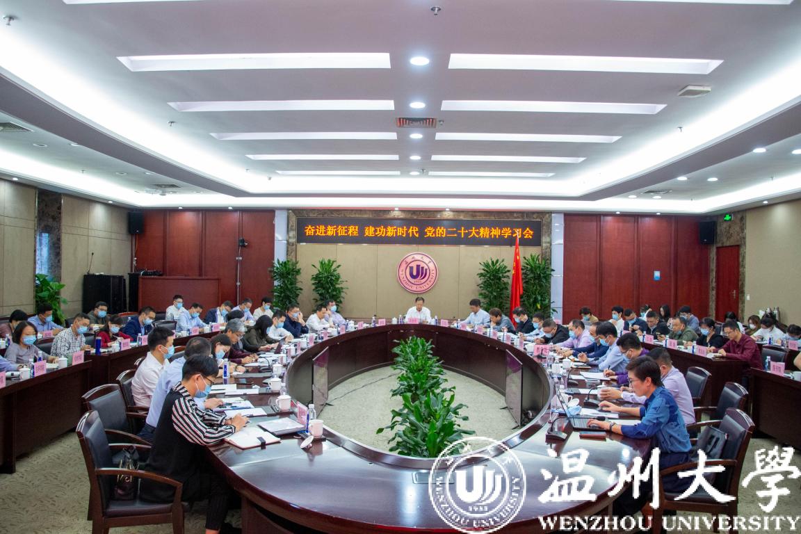 为深入学习贯彻党的二十大精神,切实把思想和行动统一到大会精神上来,全面推动香蕉视频 高质量内涵式发展。10月24日,香蕉视频 在岩松堂雁山厅举行校党委理论学习中心组扩大学习会,围绕党的二十大精神开展专题学习,研究部署学校学习宣传和贯彻举措。校党委理论学习中心组成员参加会议并深入交流研讨谈体会,各部门负责人、各学院书记和师生代表参加学习会。