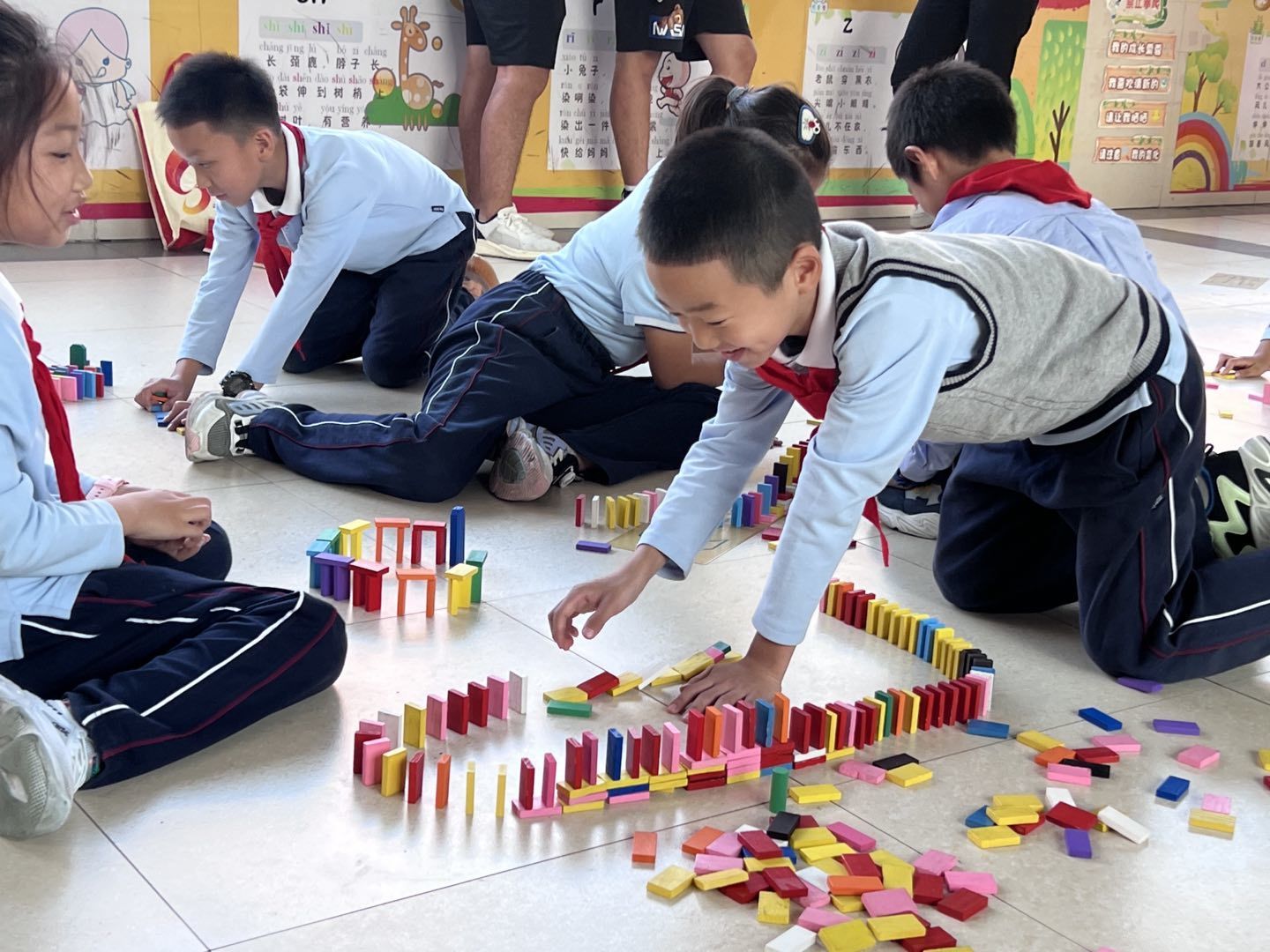 “123开始!”,小朋友手指一动,刷的一声多米诺骨牌应声倒下,课堂上又传来的一阵欢声笑语,课堂上,老师和学生们早已打成一片。这项具有香蕉视频 建筑工程学院的专业特色的公益课堂已经坚持了十年。