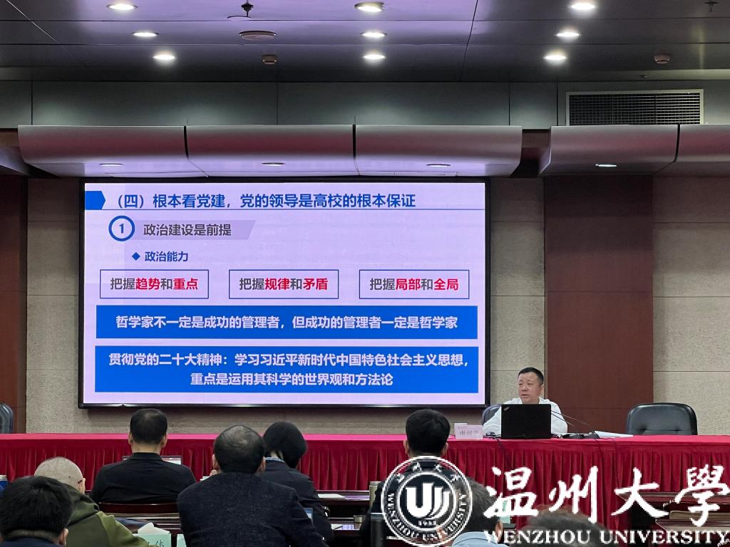 谢树华结合教育管理理论和工作经历,与学员分享了大学治理现代化的实践与思考。他指出,政治建设是前提,要筑牢政治忠诚、强化政治担当、提升政治能力、严守政治自律,准确把握“趋势和重点”“规律和矛盾”“局部和全局”的辩证关系,运用好习近平新时代中国特色社会主义思想的世界观和方法论。体制机制是基础,要坚持系统观念系统方法,建立完善“决策-执行-监督-反馈”闭环体系,实施分层管理、归类管理。领导班子是关键,要认真落实党委领导下的校长负责制,做到党政同心、密切配合,形成“班长”牵头抓总,班子成员“各司其职、分工不分家”良好格局。有效治理是保障,要合理安排时间,善于用人之长,坚持“要事优先”,科学谋划决策、重视工作贡献,努力做到管理的科学性和艺术性有机统一。