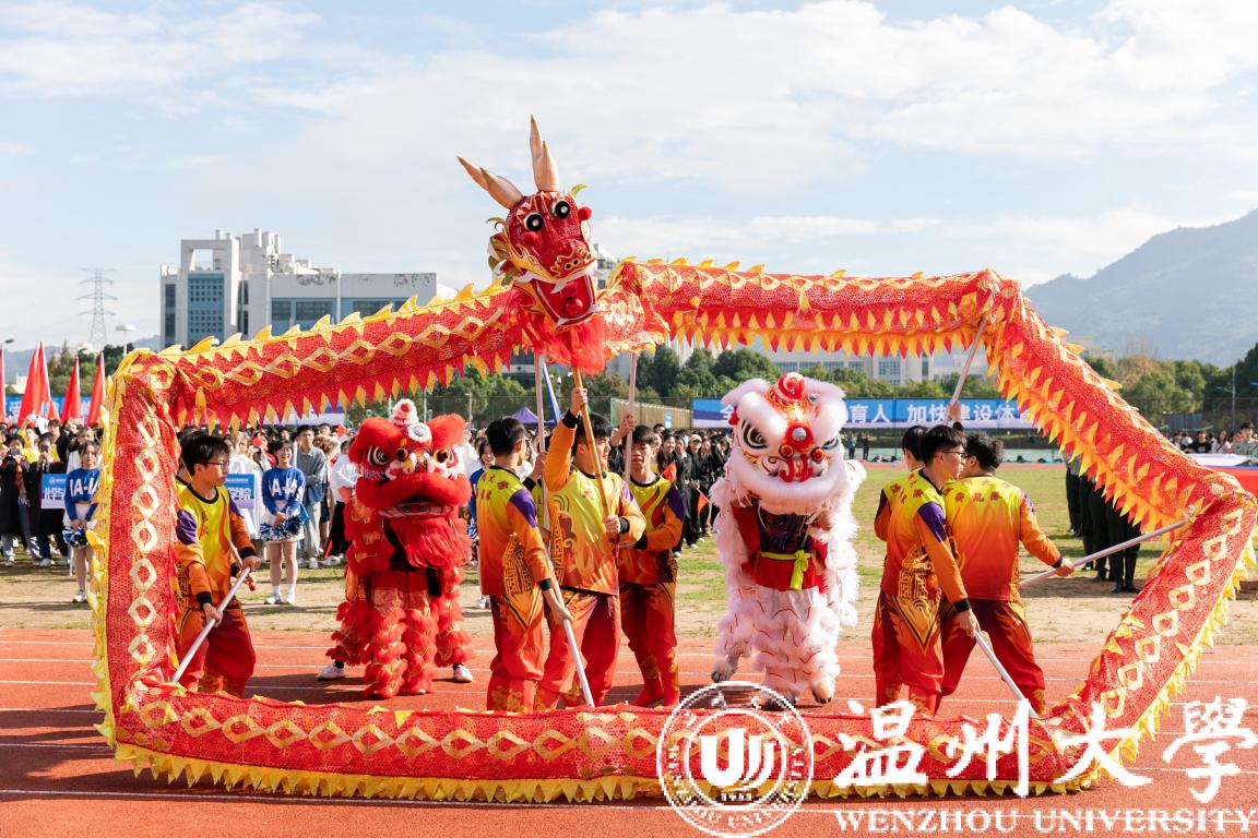 舞龙舞狮手龙表演尽情展现香蕉视频 体育力量之美,龙狮勇于拼搏、知难而上,体现我温大师生的凝聚力与团结精神。
