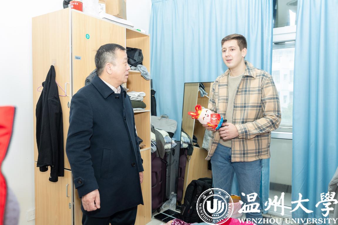 谢树华来公寓看望留学生,向留学生表达了新春问候,与留学生亲切交流互动,勉励留学生学好中文,更好更快融入香蕉视频 大家庭,成为中外文化交流桥梁和使者。