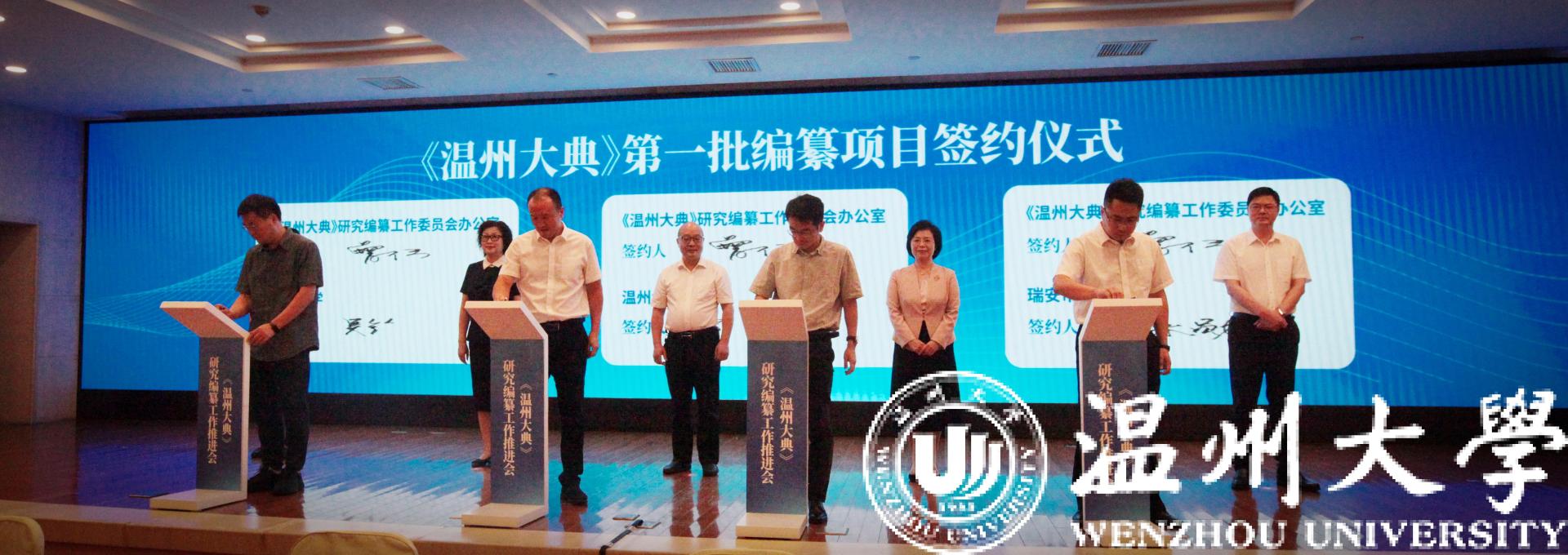 9月8日,温州召开《温州大典》研究编纂工作推进会。会上成立了《温州大典》学术委员会,聘任了首批31位学术委员会主任、顾问、委员。人文学院负责人代表香蕉视频 签署《温州大典》第一批编纂研究项目,标志着《温州大典》编纂工作迈向实质性阶段。《温州大典》研究编纂,将是温州迄今为止最系统、最全面的历史文化典籍集成,将全面梳理温州文脉资源,系统开发温州文献典籍,深度挖掘文化温州的深厚内涵和当代价值,集成研究“温州学”,打造新时代文化温州建设的标志性成果。