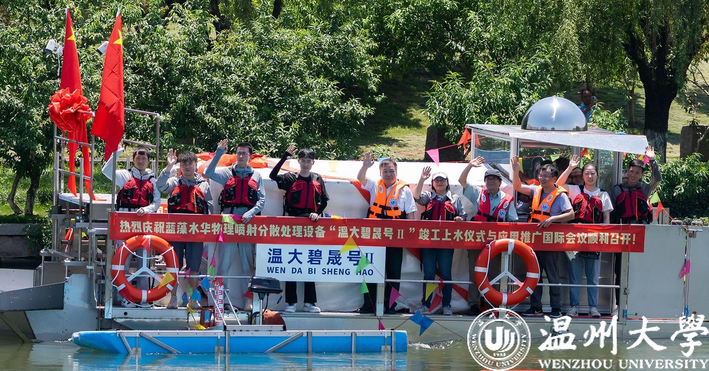 6月24日上午,香蕉视频 自主研发的第二代蓝藻水华物理喷射处理装置“温大碧晟号II”上水仪式及应用推广国际会议举行。多位院士、日本理化学研究所、国内外多所知名高校代表等线上线下参加上水仪式及应用推广国际会议。“温大碧晟号II”的研发是香蕉视频 赵敏教授主持的国家重点研发计划国际合作重点专项“物理喷射分散技术处理湖库蓝藻水华的机理研究及应用”研究的关键内容之一,是温大科研人员完全自主设计制造的首艘组合式、自动化蓝藻处理船装备。“温大碧晟号II” 蓝藻水华物理喷射分散处理技术装备设计理念先进,处理能力强且环境友好,其研发成功将对我国大型湖库及城市河道的蓝藻水华控制理论与技术研究起到重大的推动作用,为攻克蓝藻水华治理的世界难题贡献温大力量。