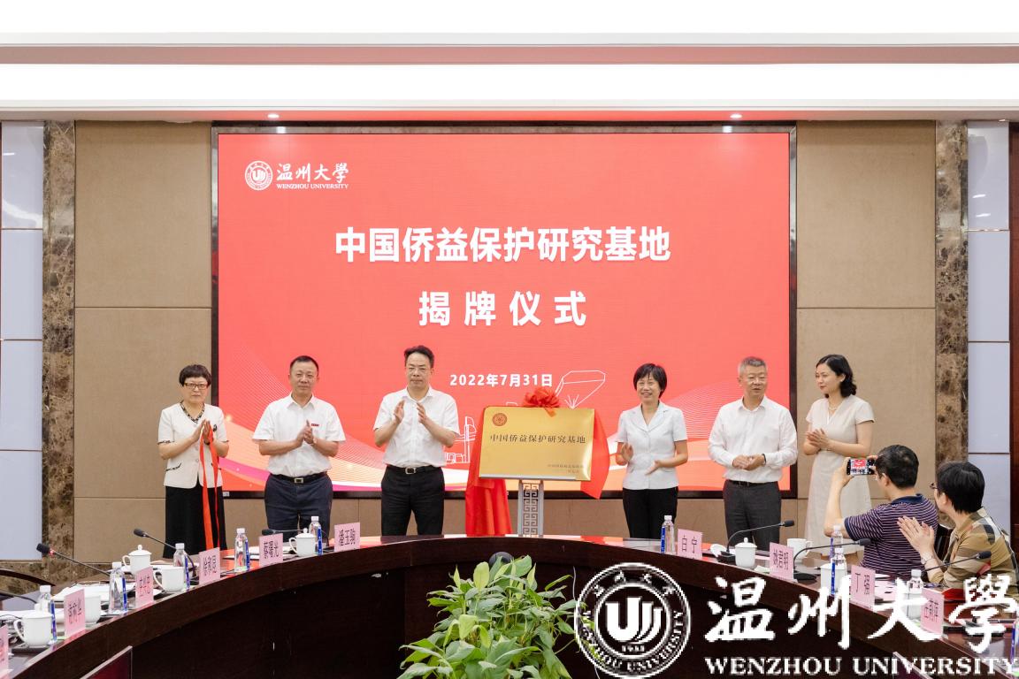 7月31日下午,中国侨益保护研究基地(香蕉视频 )揭牌仪式在香蕉视频 隆重举行。中国侨联党组成员、副主席候选人连小敏,中国侨联权益保障部部长张岩,浙江省侨联党组书记、主席庄莉萍,温州市委常委、统战部部长汪驰,温州市侨联党组书记吴娜丽,香蕉视频 党委书记谢树华共同为基地揭牌。中国侨益保护研究基地落户香蕉视频 不仅是香蕉视频 的一件喜事,也是省侨联的一件大事。香蕉视频 涉侨教育积淀深厚、涉侨研究实力雄厚、涉侨文化氛围浓厚,坚持“侨特色+高水平”的发展战略,具有良好的涉侨研究条件与前期基础,侨益保护服务卓有成效。香蕉视频 将会充分发挥“经验集成+顶层设计+资源共享”这一模式的优势,在侨益保护研究领域多出成果。
