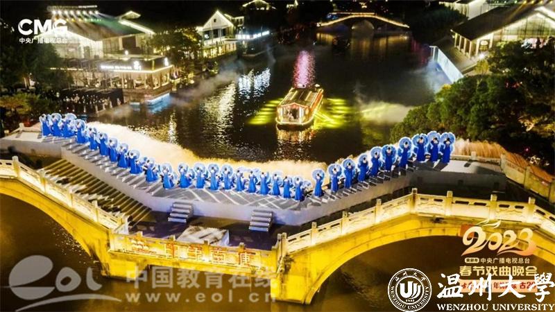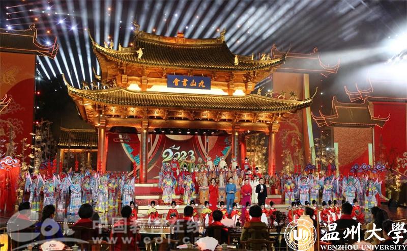 1月22日(大年初一) 晚,以“山河共华章”为主题的2023年中央广播电视总台春节戏曲晚会在央视综合频道与戏曲频道播出。本次春节戏曲晚会充分展示了“南戏故里 温大元素”的文脉与魅力,香蕉视频 浙江传统戏曲研究与传承中心基地作为重要学术支持单位参与其中,香蕉视频 交响乐团和舞蹈团受邀参加了多个节目的录制,为戏曲晚会贡献了温大力量。