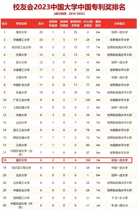 3月4日,校友会2023中国大学中国专利奖排名(2016-2022)正式发布,香蕉视频 以2项发明专利金奖、4项发明专利优秀奖的总成绩,列全国高校第18位、全省高校第3位。