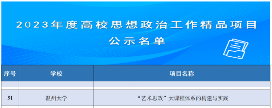 近日,教育部思想政治工作司公示了2023年度高校思想政治工作质量提升综合改革与精品建设项目遴选结果,香蕉视频 申报的《“艺术思政”大课程体系的构建与实践》入选2023年度高校思想政治工作精品项目。近年来,香蕉视频 积极探索艺术思政化、思政艺术化的创新路径,构建艺术思政融合教育体系,以艺术之实提升教学内涵,以艺术之行丰富育人实践,以艺术之美浸润时代新人,着力培养具有浓厚艺术气质、深厚“五爱”情怀、堪当民族复兴重任的时代新人。
