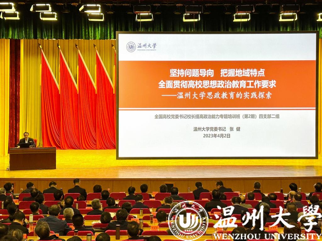近日,全国高校党委书记校长提高政治能力专题培训班(第2期)在中央党校(国家行政学院)举行,全国本科高校379位党委书记、校长参加研训。香蕉视频 党委书记张健作为学员代表,围绕加强和改进大学生思想政治教育专题,作《坚持问题导向 把握地域特点 全面贯彻高校思想政治教育工作要求》交流发言。