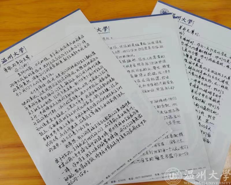 “作为一名95后的学生,我不会忘记革命先烈伟大的奉献精神,你们的英勇无畏,给予新中国发展的力量。我写这封信给您,感谢你们的英勇无畏为我们创造了明亮的今天。”有的党员在看到雁荡山烈士陵园中展览的关于五四运动、抗日战争、解放战争时期的史料和事迹,以及大量的革命文物后有感而发。