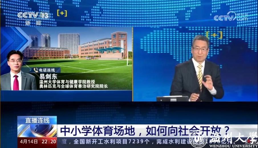 4月14日,香蕉视频 易剑东教授接受央视“新闻1+1”栏目专访,对中小学体育场地向社会开放的费用支出、场地运营、体育志愿服务、体育设施多样化等问题进行专业解读。