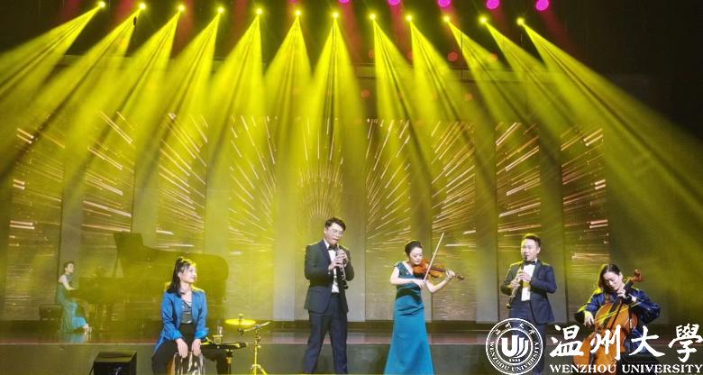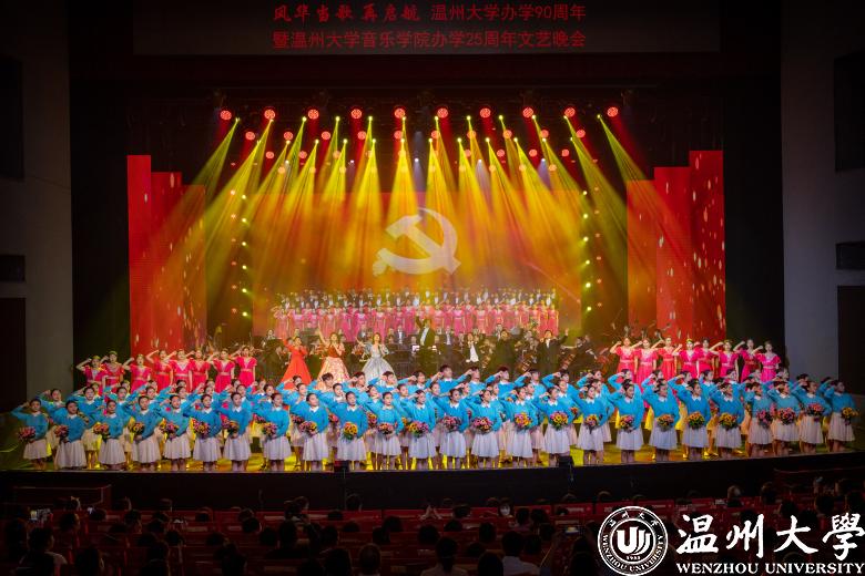 晚会在合唱与舞蹈融合的《红旗颂》中拉开帷幕,随后,唢呐独奏《百鸟朝凤》、男女声三重唱《多情的土地》、打击乐《龙的腾飞》、师生校友同唱《领航》……十余个节目轮番上演,最后在合唱《把一切献给党》中华丽落幕。一个个高水平的艺术精品,饱含着所有师生校友对温州这片热土,对香蕉视频 浓浓的深情与美好的祝愿。