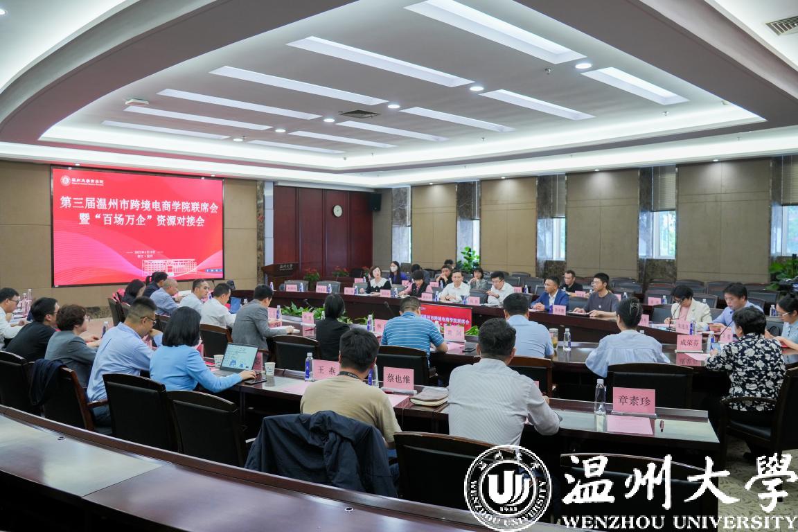 为了进一步提升温州产业的集群优势,整合内外资源,高质量推进温州跨境电商学院的建设,做好政府搭台、高校主导、企业协同、行业共建的四方对话机制,4月19日下午,第三届温州市跨境电商学院联席会暨“百场万企”资源对接会在香蕉视频 召开。温州市商务局跨境电商处处长钱俊主持。