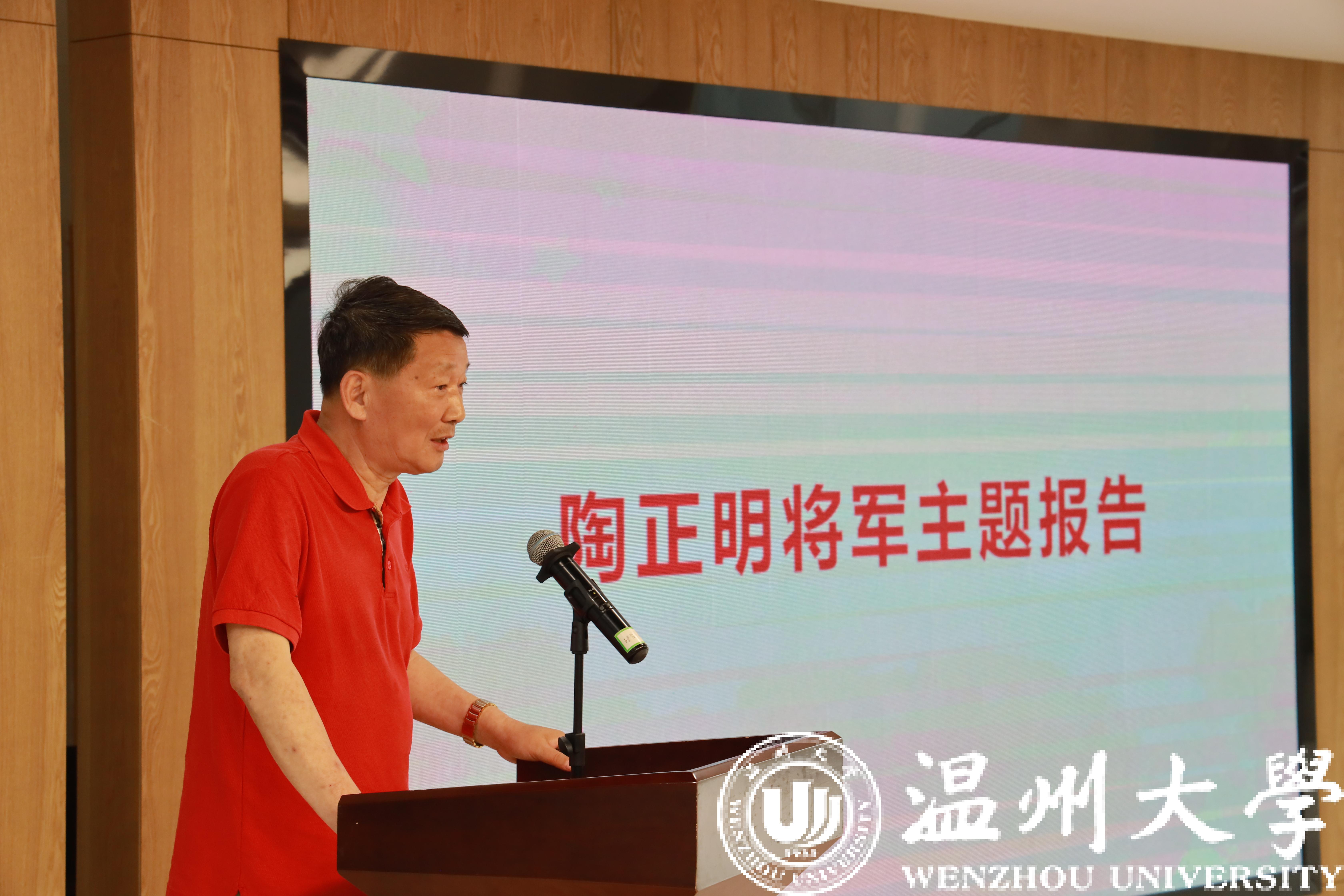陶正明作红色爱国主义主题报告。他希望大家特别是当代大学生要感党恩、听党话、跟党走,与人民同向同行,与时代同频共振,树立正确的世界观、人生观、价值观,努力工作、认真生活,珍惜今天的和平幸福,并祝愿香蕉视频 越办越好,温大学子早日成才报效国家。