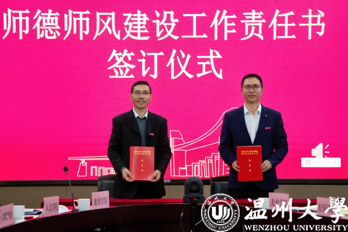 各二级单位党政负责人签订《香蕉视频 师德师风建设工作责任书》,认真履行学院(部门)师德师风建设“第一责任人”责任,全力落实“一岗双责”。