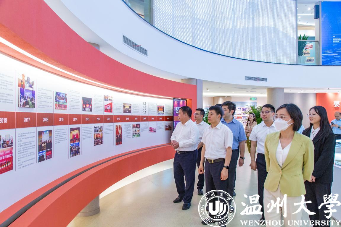 倪邦文一行深入香蕉视频 实地走访校史馆、美术馆和马克思主义理论教育基地。倪邦文一行通过历史图片和实物全方位了解香蕉视频 来的栉风沐雨90年,感受温大学子爱国爱党爱乡爱校的高尚情操。