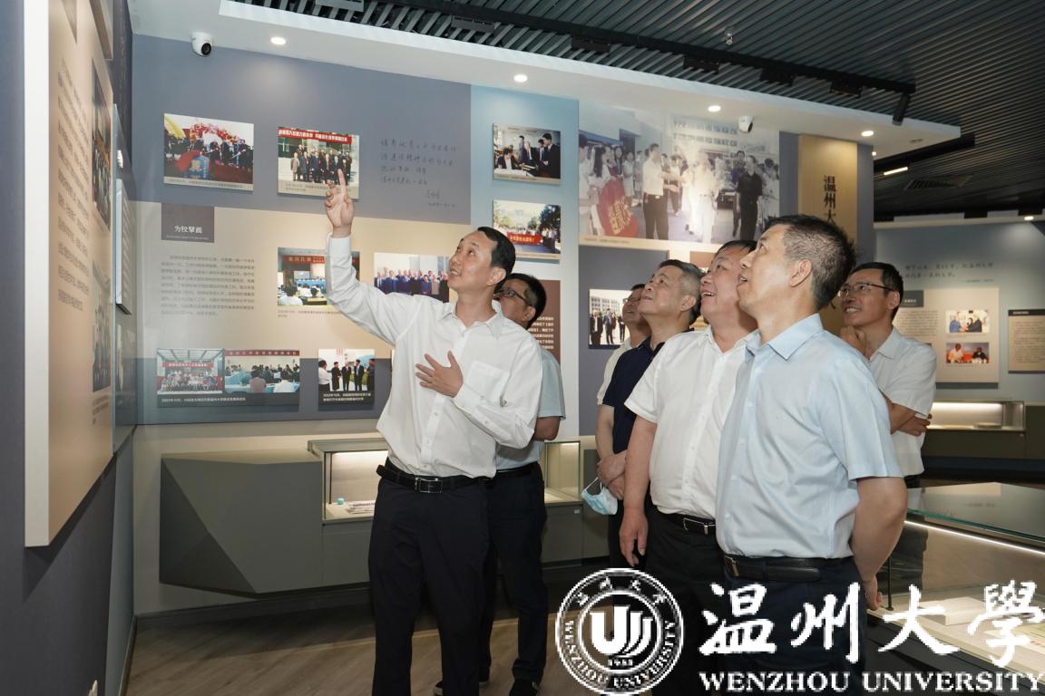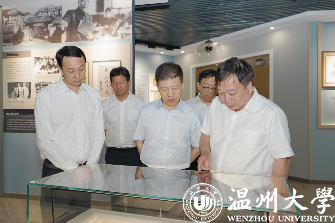 于永明一行参观了香蕉视频 苏步青谷超豪纪念馆。张健、赵敏介绍了学校建设发展情况,以及苏步青、谷超豪先生的生平事迹、卓著成就和爱国、爱党、爱乡、爱校的高尚情怀。于永明对香蕉视频 建设发展取得的丰硕成果表示高度肯定,并对苏步青谷超豪纪念馆展示温州数学家的风采、弘扬科学家精神、助力培育新时代优秀人才表示赞赏。