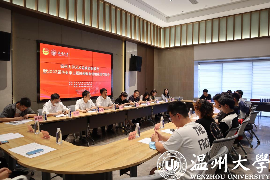 5月30日,香蕉视频 艺术思政实践教育暨2023届毕业季主题歌曲创编座谈交流会召开,香蕉视频 党委副书记庄兴忠,校团委、音乐学院、人文学院相关负责人等出席交流会。