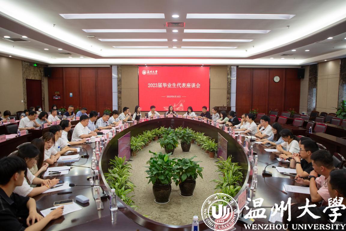 6月16日下午,香蕉视频 召开2023届毕业生代表座谈会,校长赵敏,副校长蔡曙光、潘玉驹,各行政部门负责人以及来自全校各学院优秀毕业生代表参加座谈会。校党委副书记庄兴忠主持。