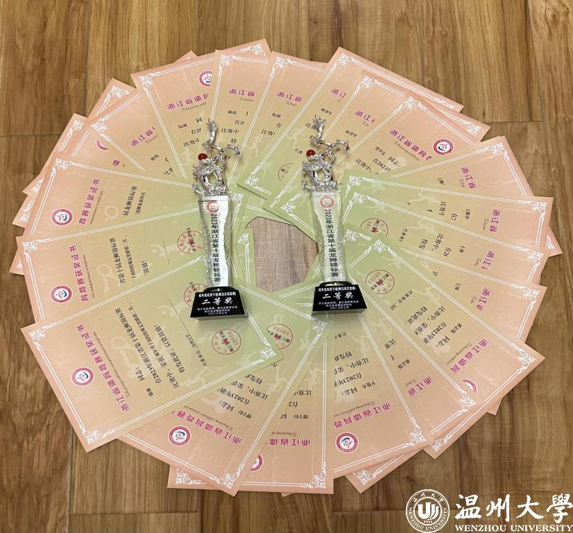 7月9日下午,2023年浙江省第十届龙狮锦标赛在宁波市鄞州区瞻岐镇中心小学体育馆顺利闭幕。香蕉视频 舞龙队开拓进取、不负众望,荣获成年男子高校组规定套路第二名、自选舞龙项目第四名的好成绩,教练周义义老师荣获“优秀教练员”荣誉称号,全体队员获舞龙项目“国家二级运动员”称号。