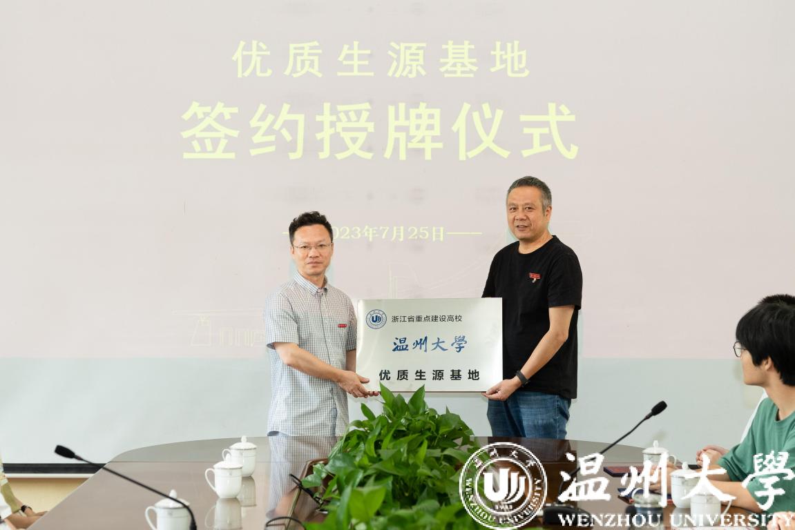 庄兴忠表示,春晖中学有着深厚的人文底蕴,在115年的办学历程中,一直秉持教育创新的传统。他对即将加入温大大家庭的三位同学表示欢迎,对春晖中学注重教学改革、重视学生全面发展的办学理念表示赞赏,并对春晖中学多年来向温大输送大量优秀学子表示衷心感谢。近年来,师资定向录取分数节节攀升,看到越来越多的优秀学子志愿投身杏坛,加入基础教育建设的队伍,感到由衷欣慰。借此契机,香蕉视频 与浙江省春晖中学进行了优质生源基地签约授牌仪式,希望能够开展多层次、多方位的友好交流合作。