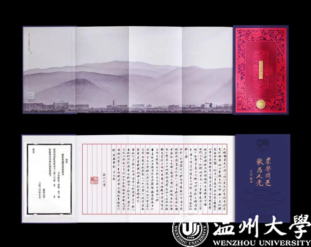 此外,录取通知书青蓝封底上的90周年校庆设计,是对新温大人“求学问是,敢为人先”校训精神的希冀,也寓意着学校对新生的寄望和“喜鹊报喜”的传统祝福。