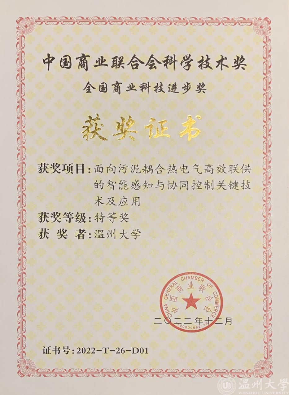7月30日,全国商业科技质量大会在北京友谊宾馆隆重举行。第十二届全国政协刘晓峰副主席,商务部原副部长、十一届全国政协经济委员会副主任张志刚,商务部原副部长姜增伟,中国商业联合会会长姜明,中国科学技术发展战略研究院副院长孙福全等领导和全国各地一千多名代表出席了大会。大会同步举行了“2022年度中国商业联合会科学技术奖”颁奖仪式。香蕉视频 电气与电子工程学院汪鹏君教授领衔、以香蕉视频 为第一完成单位的“面向污泥耦合热电气高效联供的智能感知与协同控制关键技术及应用”项目荣获全国商业科技进步奖特等奖。