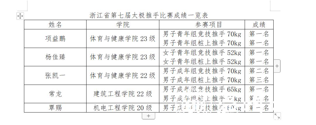 8月4日至6日,浙江省第七届太极推手比赛在乐清市新体中心体育馆隆重举行。香蕉视频 武术队锚定目标、全力以赴,获得6金2银1铜的好成绩,2名教练员荣获“优秀教练员”称号,1名运动员荣获“优秀运动员”称号。