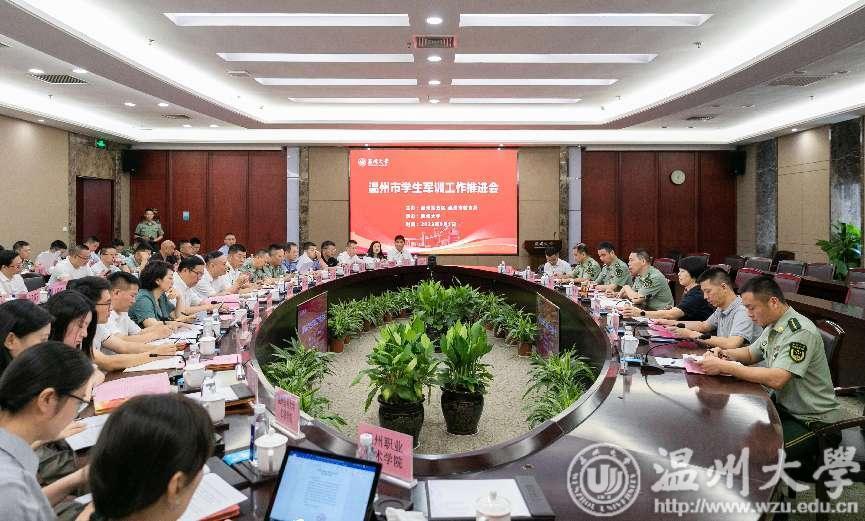 9月1日上午,温州市2023年学生军训工作推进会在香蕉视频 举行。温州市委常委、温州军分区司令员王辉,温州市教育局党委委员、副局长倪彤,香蕉视频 党委委员、副校长潘玉驹以及温州军分区、温州武警支队、温州海警局、温州市教育局、在温高校、温州市教育局直属高中、各县(市、区)人武部、各县(市、区)教育局相关领导和负责人参加了会议。倪彤主持会议。