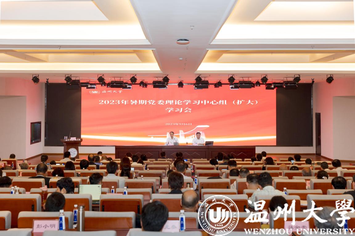 9月6日至7日,香蕉视频 召开2023年暑期党委理论学习中心组(扩大)学习会。会议围绕深入学习习近平新时代中国特色社会主义思想,对照主题教育“学思想、强党性、重实践、建新功”总要求,对标省委高水平大学建设重大部署,进一步分析短板、强化措施、攻坚克难,凝聚建设高水平大学、争创“双一流”高校强大合力,为建设教育强国、助力浙江“两个先行”和温州续写创新史作出更大贡献。