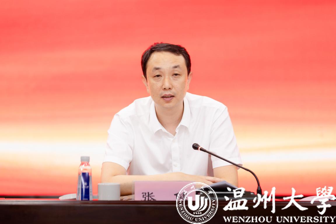 赵敏强调,温大正处于争创高水平大学、争创国家“双一流”高校的关键期,要紧紧抓住国家推进教育强国建设、我省加快高教强省建设的历史机遇,谋深谋细谋实发展举措,全力推动学校高水平建设、高质量发展。面向“高水平”、争创“双一流”,必须树立“时不我待”的危机意识;必须涵养“舍我其谁”的雄心壮志;必须积蓄“一招制胜”的优势特色。通过重点发力、查缺补漏、久久为功,打造一流学科、引育一流师资、培养一流人才、产出一流成果、开展一流服务、强化一流治理、优化一流硬件。
