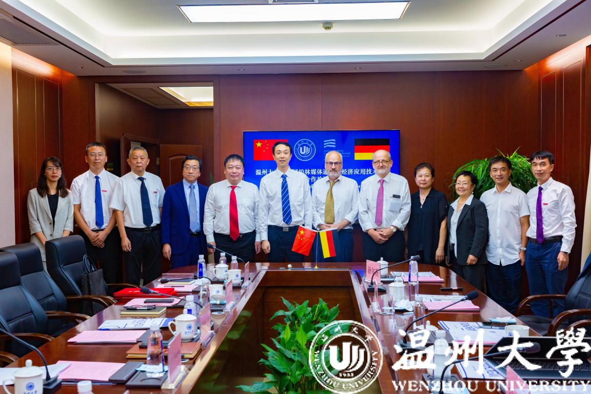 赵敏对舒尔茨·克劳斯-迪特尔校长一行的来访表示热烈欢迎。他介绍了香蕉视频 的建设发展情况。他指出,近年来香蕉视频 在人才培养、学科建设、科学创新、服务社会、国际合作等方面取得了跨越式发展,综合实力和社会影响力不断提升,正朝着高水平大学建设不断迈进。舒尔茨·克劳斯-迪特尔校长代表校方表示感谢,他高度评价香蕉视频 的建设成果,并详细介绍了HMKW概况。他表示,HMKW希望与香蕉视频 深化合作领域和专业,推动双方合作更上一层楼。双方就“数字营销”硕士专业联合培养进行了友好协商,达成一致意见。赵敏与舒尔茨·克劳斯-迪特尔校长共同签署了两校项目合作协议书。