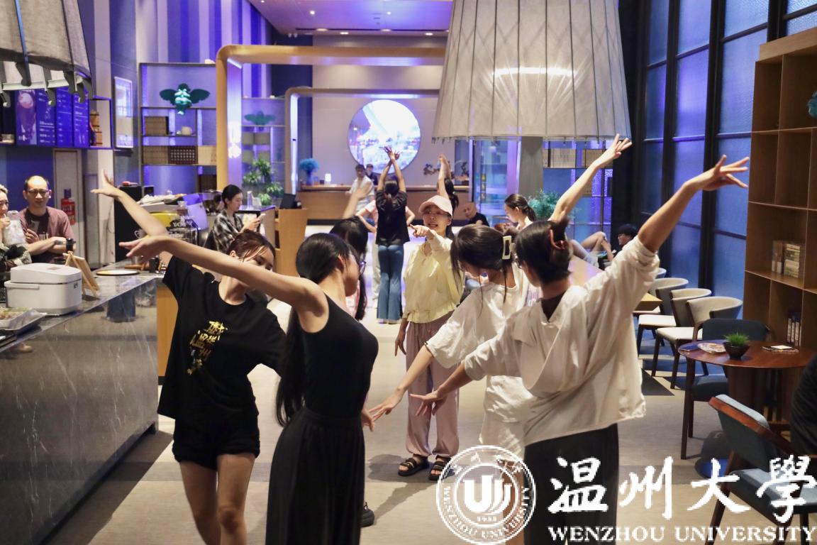 “我们表演的是龙舟乘风破浪时浪花奔涌的场面,通过温州传统舞蹈‘浮缸’展现瓯江潮水的意象。”香蕉视频 音乐学院老师於睿介绍,浮缸舞由瓯剧传统剧目的片段《浮缸》演变而来,讲述了英雄岳飞出生时,汤阴县突发大水,岳母怀抱幼子,坐于花缸,在洪水中飘浮并得救的故事。通过有规律的颠簸、摇荡表现人在水里的漂浮和人在风浪中搏斗的动态,是戏舞与民间舞融合的典型。