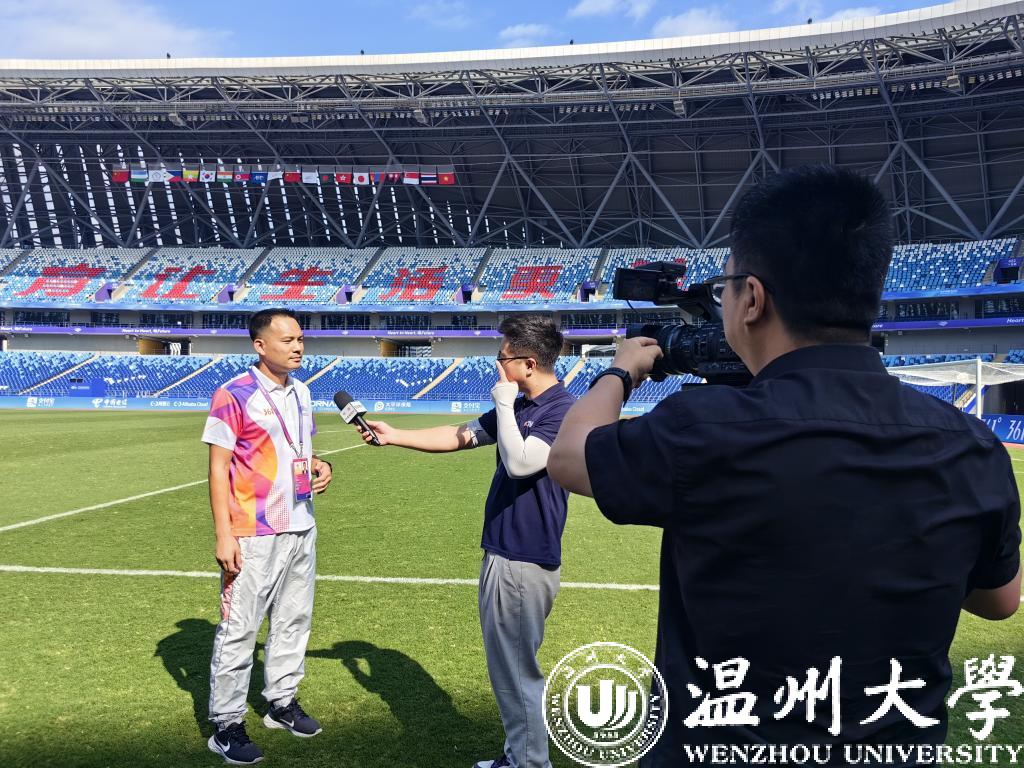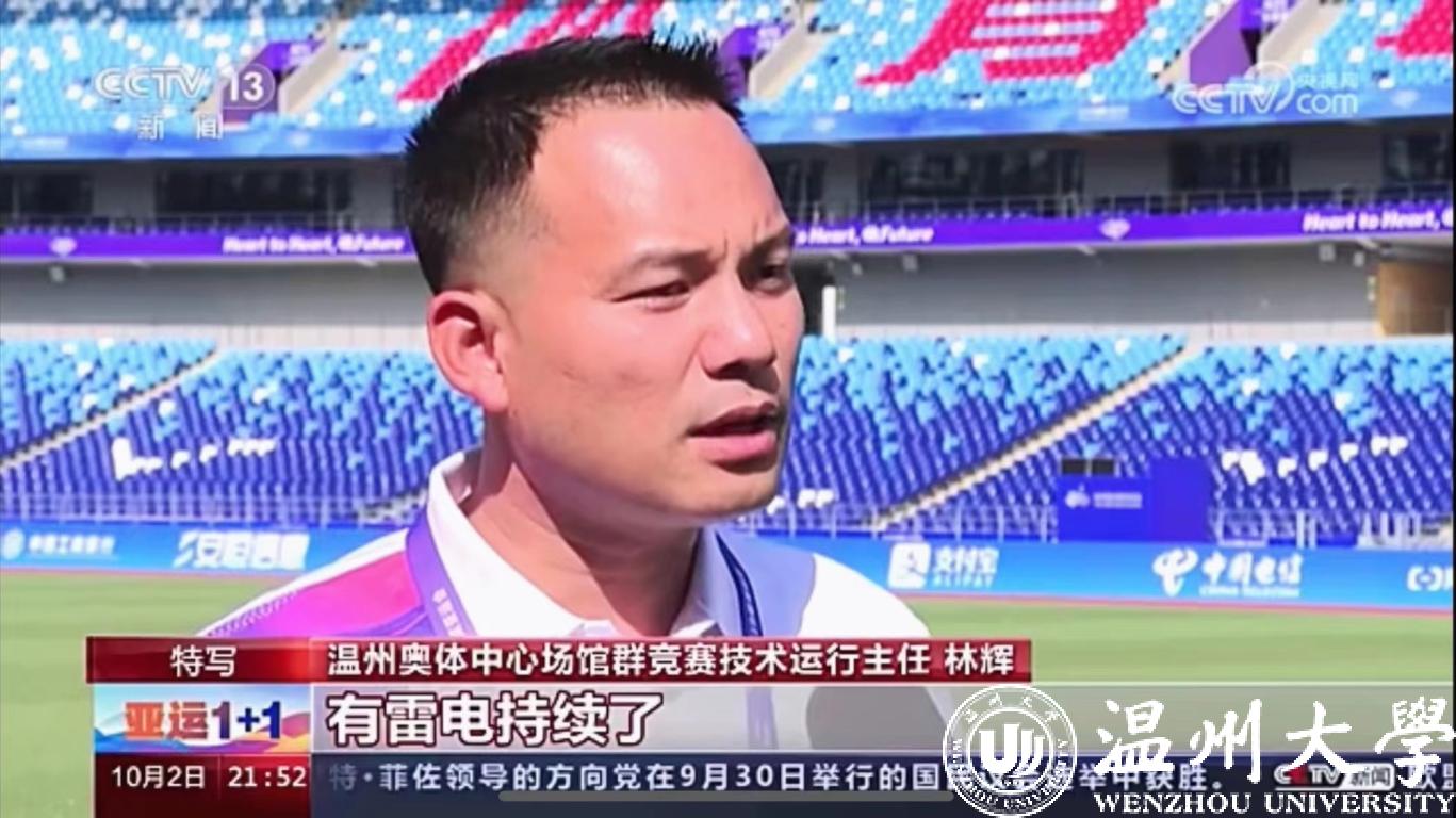 10月2日,温州奥体中心场馆群竞赛技术运行主任、香蕉视频 体育与健康学院副教授林辉老师在温州奥体中心接受央视“亚运1+1”栏目的专访,解答杭州亚运会女子足球1/4决赛比赛过程中因暴雨雷电天气中断的应急预案。