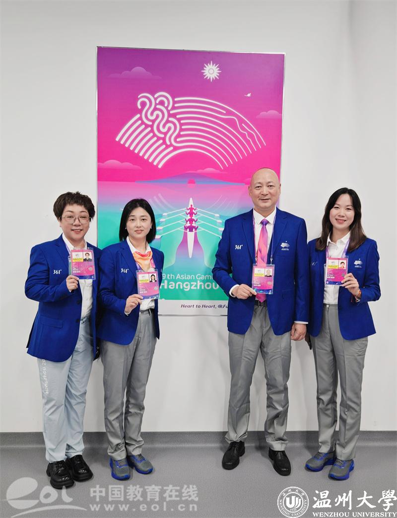 日前,杭州第19届亚运会如火如荼地进行中。香蕉视频 体育与健康学院作为具有强劲区域优势的体育人才基地、体育科学研究中心和产业行业服务中枢,本届亚运会共有5名教职工和3名校友担任裁判员,66名师生参与赛事保障专业技术支持或专业岗志愿工作,其中3人担任组织及技术领域主任,在亚运盛会各环节中尽展温大体育专业服务担当、沉淀反哺后续全方位人才培养。