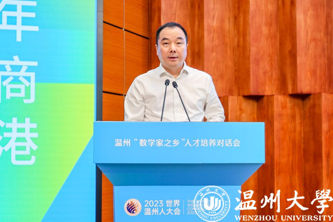吕伯军致辞。他代表温州市委、市政府向远道而来的各位嘉宾、向回到家乡的各位乡贤表示热烈欢迎,对一直以来支持温州发展的各界人士表示衷心感谢。他指出,数学是科技创新的基础学科,也是促进浙江、促进温州发展的重要力量。他提出三点希望,希望大家把温州数学的基因赓续好,传承好,探索更高质量的数学发展之路,推动温州乃至全省全国的数学事业高质量发展;希望大家以数学为桥梁,以对话为媒介,在学科建设,学术应用上深化与温州的交流合作,让更多先进理念、前沿成果和教育项目能够落地温州,扎根温州,为温州实现从商行天下到智行天下转型发展贡献数学力量;希望大家与温州的未来携手共进,深入体会千年商港幸福温州的独特韵味,为温州的数学事业的发展、创新高地的建设提供更多的人才动能和智力支撑。