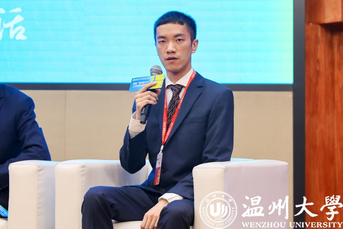 “数学家摇篮工程”受益者、香蕉视频 数理学院教师蔡一常发言。他表示,数学家摇篮工程,是一扇通往数学殿堂的大门,在摇篮工程的帮助扶持下,自己才能成长为今天的数学教师和数学研究者。今后,也将回馈“数学家摇篮工程”,为温州数学事业发展,温籍数学家精神宣讲尽绵薄之力。