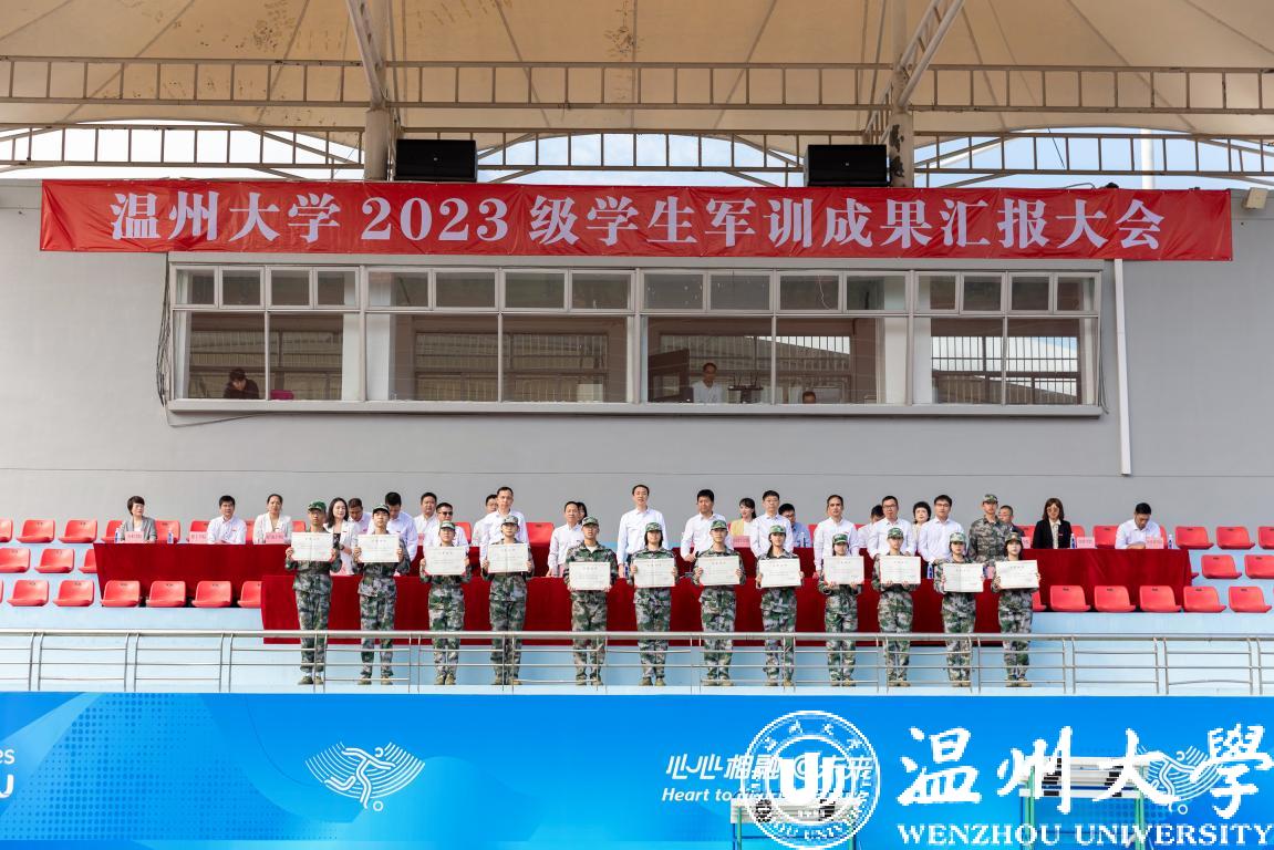 参与表演的学生精神饱满、雄健有力,展示了14天军训的成果,生动诠释了“求学问是,敢为人先”的温大精神,为军训画上了圆满句号。