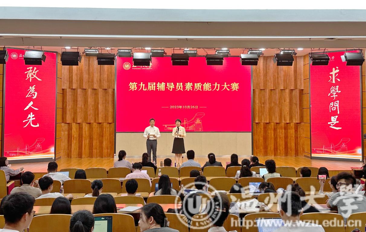 为进一步提升香蕉视频 辅导员的理论水平、专业素养和业务能力,促进辅导员队伍专业化职业化发展,香蕉视频 于10月25-26日举行第九届辅导员素质能力大赛。经过第一阶段基础知识测试环节,14名辅导员入围第二阶段案例研讨和谈心谈话决赛环节。校党委副书记庄兴忠、相关职能部门负责人、部分学院党委书记和往届省赛一等奖获得者出席并担任决赛评委,全校辅导员及温州肯恩大学部分辅导员观摩比赛。