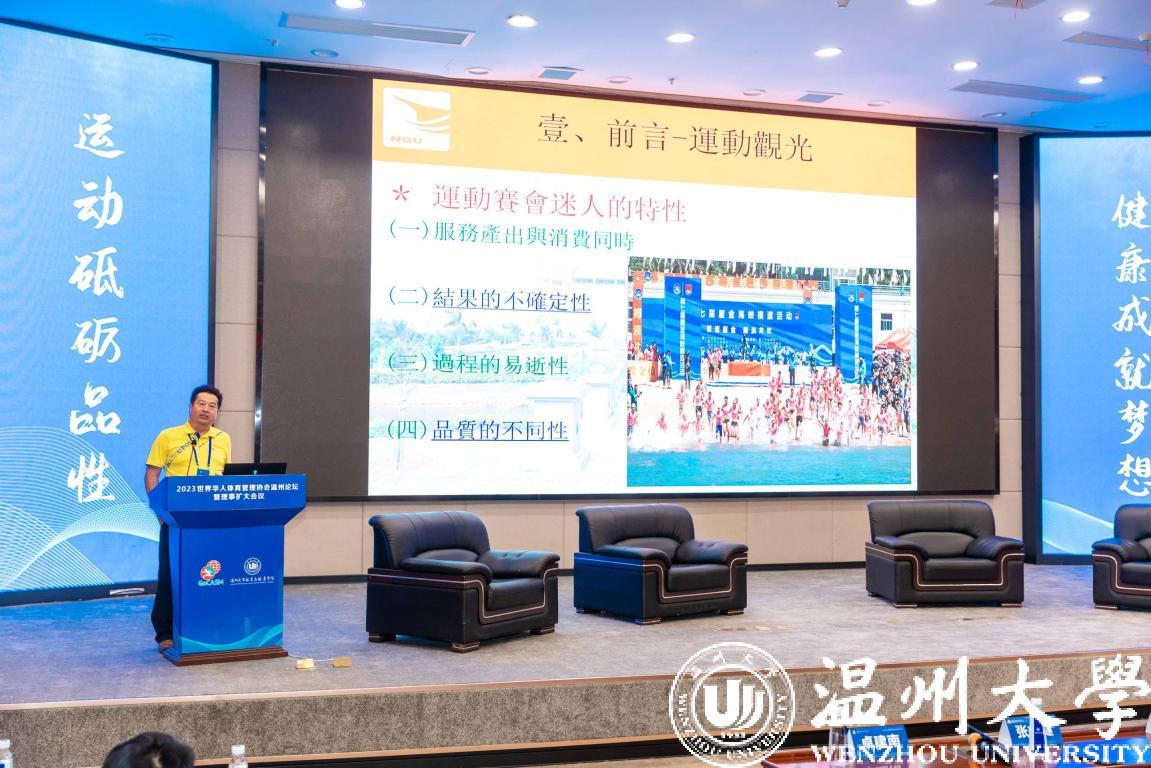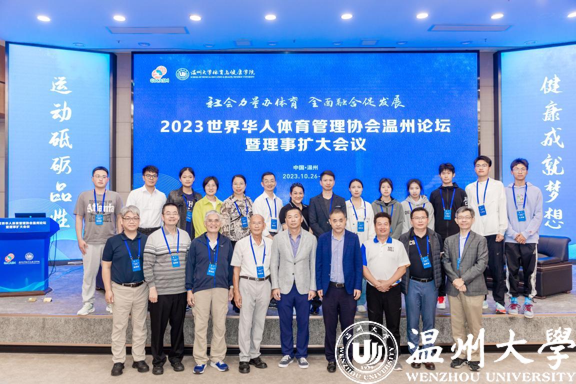 10月28日,2023世界华人体育管理协会温州论坛暨理事扩大会议在香蕉视频 举行。此次论坛会议汇聚了大陆、台湾、港澳与海外分会众多体育领域专家,会议就体育事业创新与改革、社会力量如何促进体育事业发展等问题展开讨论交流,围绕“社会力量办体育、全面融合促发展”这一主题建言献策。