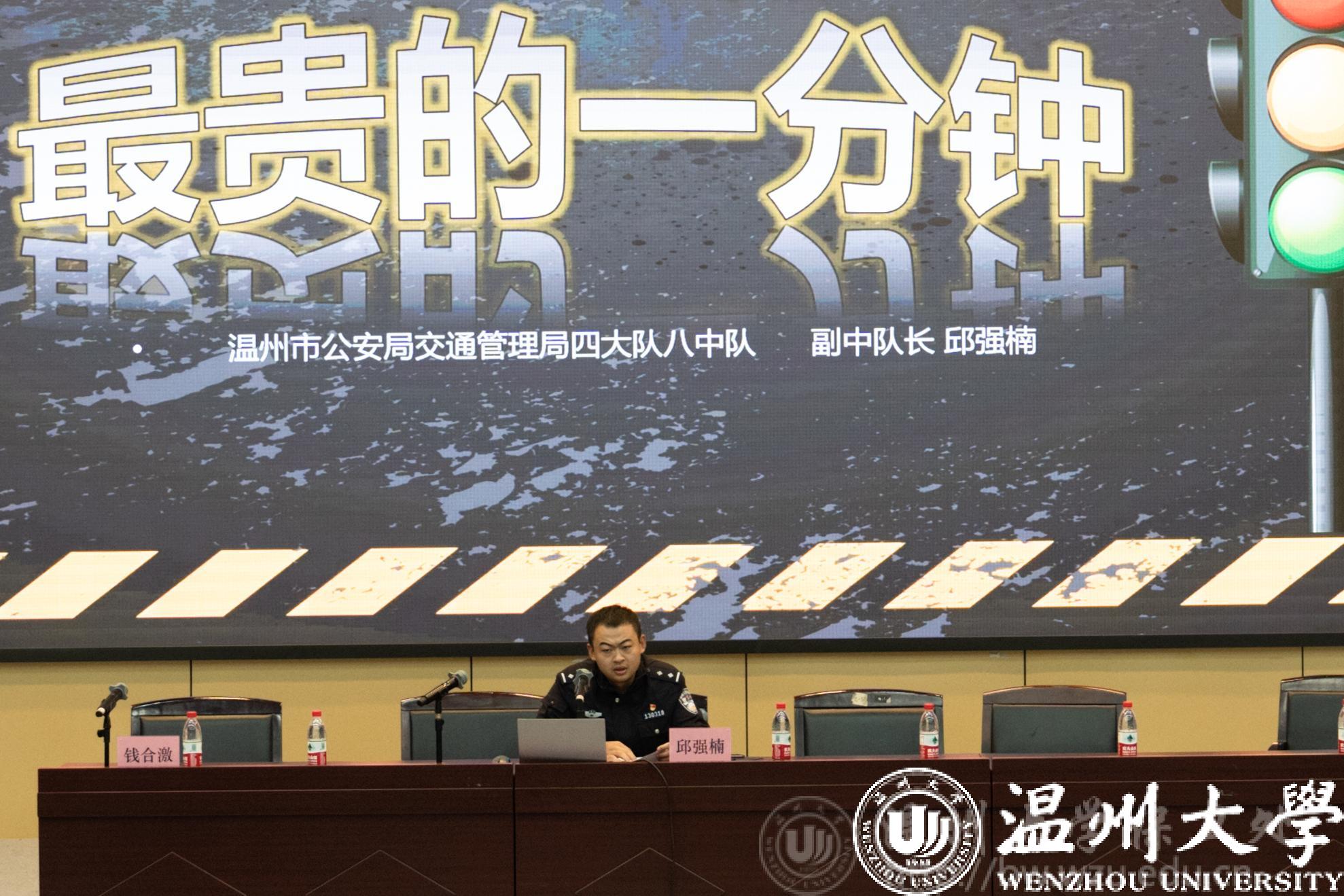 市交警四大队八中队副中队长邱强楠以“最贵的一分钟”为主题作报告。他希望师生树立交通安全意识,严格遵守交通规则,坚决摒弃各类交通违法行为,争做文明交通的宣传者、参与者、监督者,为平安校园建设贡献自己的一份力量。