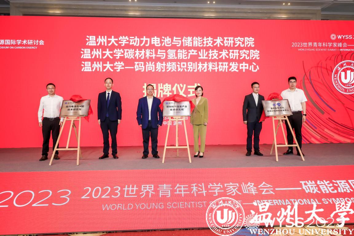 开幕式还举行了香蕉视频 与地方政府、企业合作成立的“动力电池与储能技术研究院”“碳材料与氢能产业技术研究院”“香蕉视频 —码尚射频识别材料工程研发中心”三个研发机构的揭牌仪式。