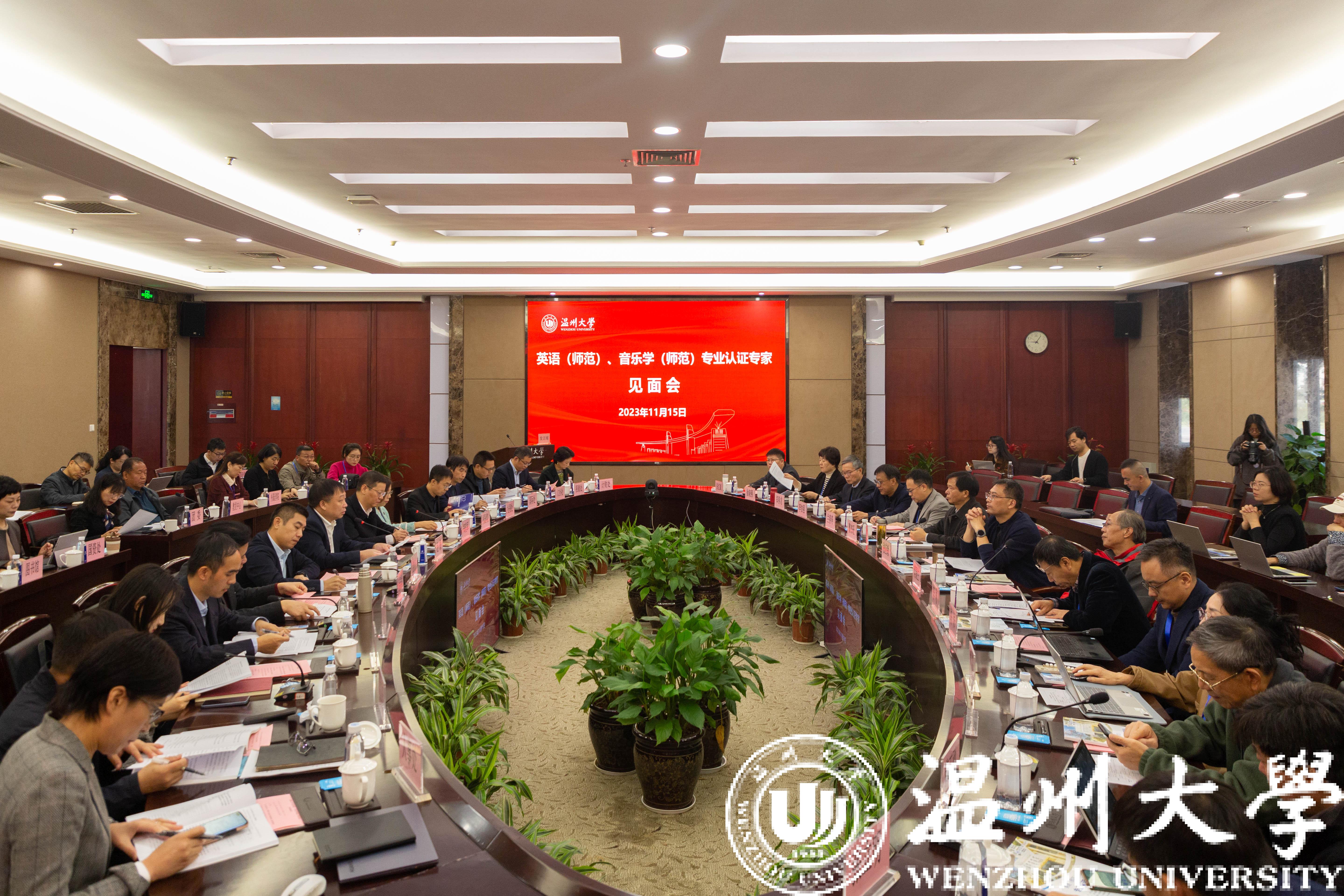 11月15日上午,香蕉视频 在岩松堂白鹿厅举行英语和音乐学师范类专业第二级专业认证专家见面会。英语(师范)专业认证专家组由淮南师范学院原校长曹杰旺教授担任组长,福建师范大学兰春寿教授、宿州学院李加强教授、宁波大学郑春龙教授、上海市金山中学徐晓燕校长等为专家组成员,丽水学院朱红斌为项目秘书;音乐学(师范)专业认证专家组由南京师范大学原副校长傅康生教授担任组长,湖州师范学院李彬教授、浙江音乐学院陈沛教授、嘉兴学院顾群教授、浙江省教育厅教师工作处原调研员李敏强等为专家组成员,黑龙江教育评估院张立明为项目秘书。浙江省教育考试院评估部张应敏主任、薛玉刚同志,校长赵敏,党委委员、组织部部长郑信军出席会议,相关职能部门负责人、两个专业所在学院的领导和教师代表、其他承担师范生培养学院代表参加会议。
