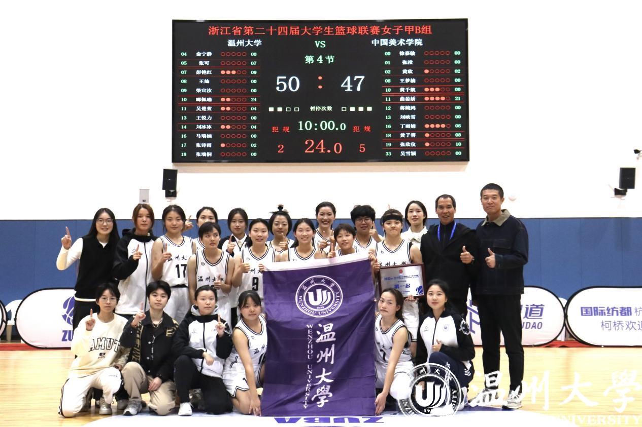在11月14日-11月17日举行的小组赛中,温大公体女篮四战三胜,分别以53:27战胜浙江广厦大学,67:37战胜浙江万里学院,46:38赢下浙大城市学院,46:47一分之差惜败杭州商学院。