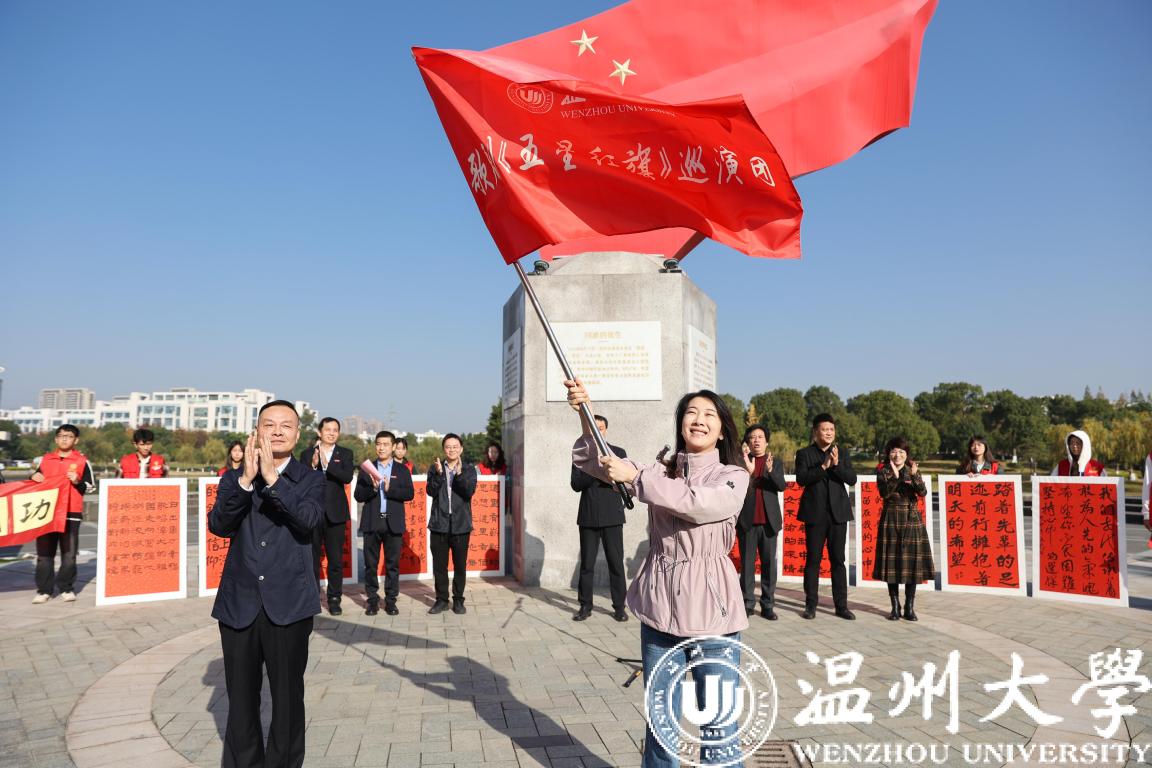 “日出东方,幸福歌唱,伟大的祖国走向富强。心潮逐浪,激情飞扬,崭新的世界续写新的辉煌……”11月28日上午,在激昂的《国旗颂》中,歌剧《五星红旗》巡演出征仪式在国旗广场拉开帷幕。校党委书记张健,党委副书记庄兴忠,副校长、宣传部部长潘玉驹,以及相关部门负责人、师生演职人员及志愿者等参加仪式。庄兴忠主持。