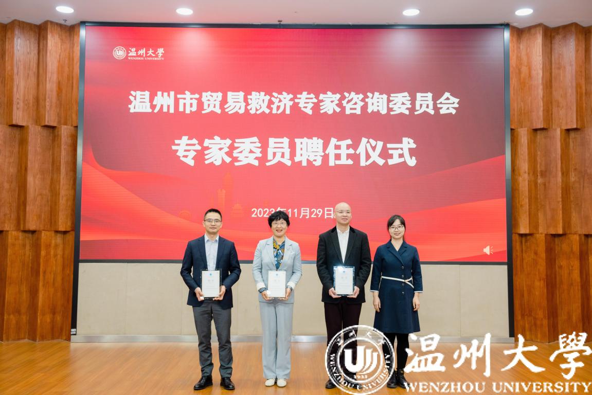 温州市商务局局长虞立清宣读温州市贸易救济研究院专家咨询委员会专家委员名单,聘任复旦大学一带一路和全球治理研究院国际法律研究所所长龚柏华、世贸组织首批讲席教授、亚太培训中心主任、上海高校智库国际经贸治理研究中心主任张磊、浙江省贸易摩擦应对研究中心主任、浙江外国语学院“一带一路”学院、华侨学院、国际学院执行院长陈利强、 香蕉视频 法学院院长、温州市贸易救济研究院院长王宗正、香蕉视频 期刊社社长缪心毫、浙江省科技厅软科学研究基地区域经济与文化融合创新发展研究中心主任、温州职业技术学院国际商务研究院院长鲁丹萍为专家委员。浙江省商务厅贸易救济调查局副局长张江婕分别为专家颁发聘书。