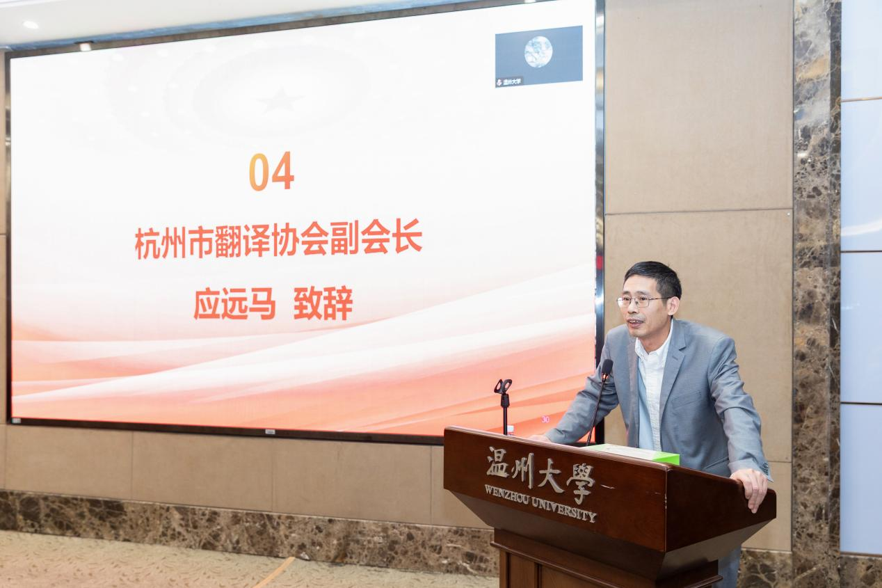 应远马宣读了杭州市翻译协会贺词,祝愿温州市翻译协会各项工作蒸蒸日上,共同为浙江省内翻译事业的繁荣做出一份贡献。