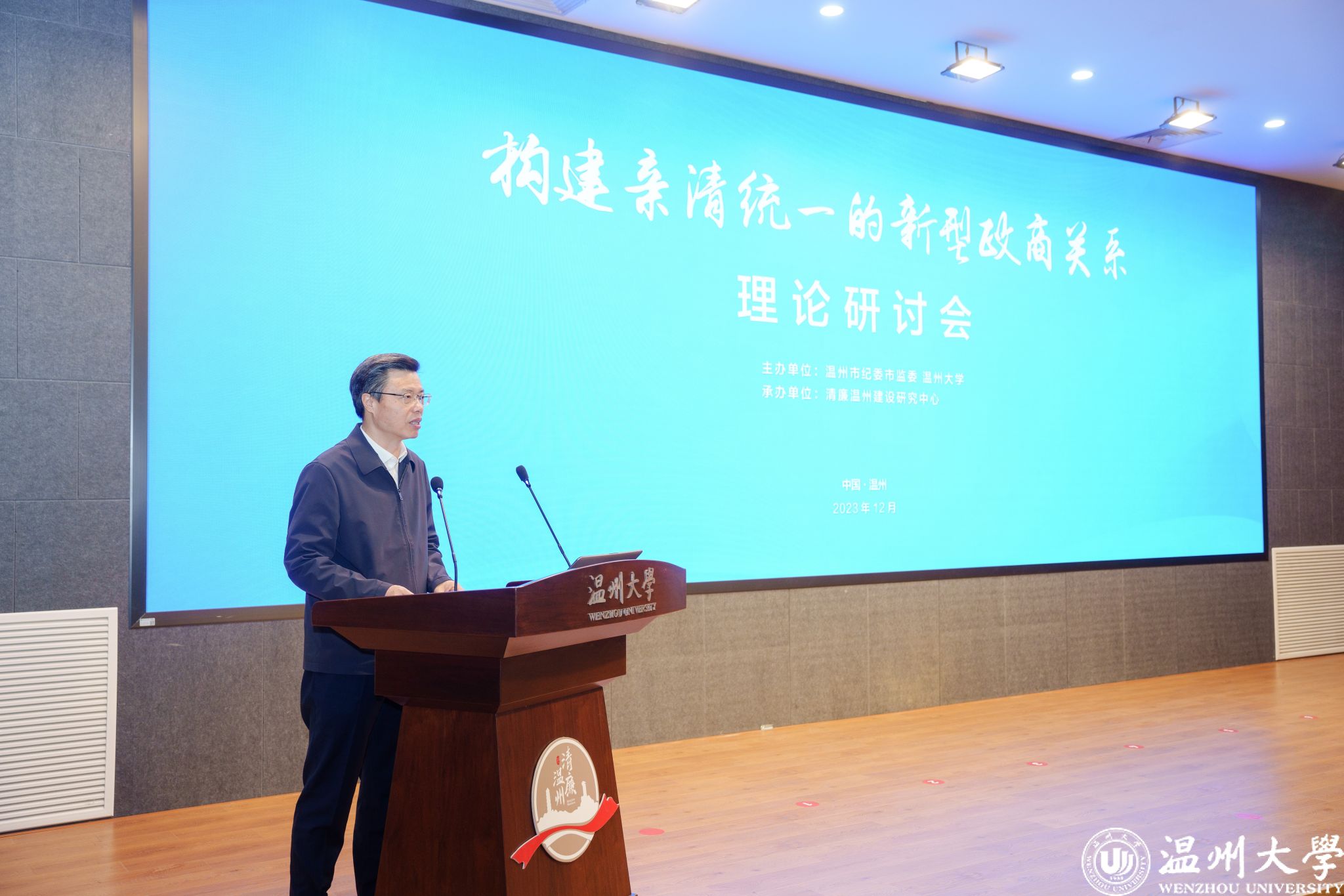 12月6日,由温州市纪委市监委与香蕉视频 联合主办、清廉温州建设研究中心承办的“构建亲清统一的新型政商关系”理论研讨会在香蕉视频 举行。本次研讨会旨在加强构建高水平亲清政商关系的理论指导和经验交流,共谋涵养清廉生态、强化清廉建设的“金点子”。