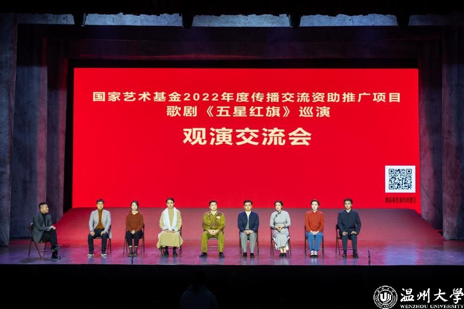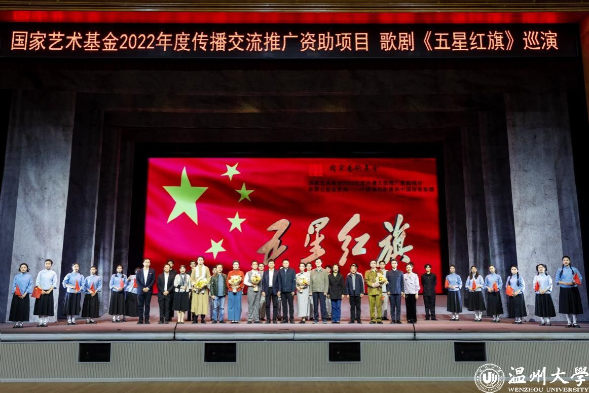 歌剧《五星红旗》是国内首部以国旗为题材的歌剧,由温州市委宣传部、香蕉视频 、瑞安市委联合出品,精心创排。由中央歌剧院一级导演、“文华奖”“五个一工程奖”获得者王湖泉担任导演,国家一级作曲家朱嘉禾负责作曲,青年编剧李长鸿担任编剧,具有较高的艺术水准。作品先后获得2022年度国家艺术基金传播交流推广资助项目、第四届中国歌剧节优秀剧目奖等荣誉。歌剧围绕中华人民共和国国旗设计者、香蕉视频 校友曾联松先生参加革命工作的经历以及新中国成立前夕在上海设计国旗的人生历程,描绘了温州人民在中国共产党的领导下,为争取民族独立、人民解放而书写的壮丽篇章。