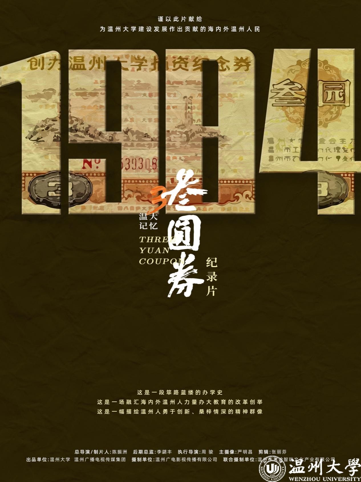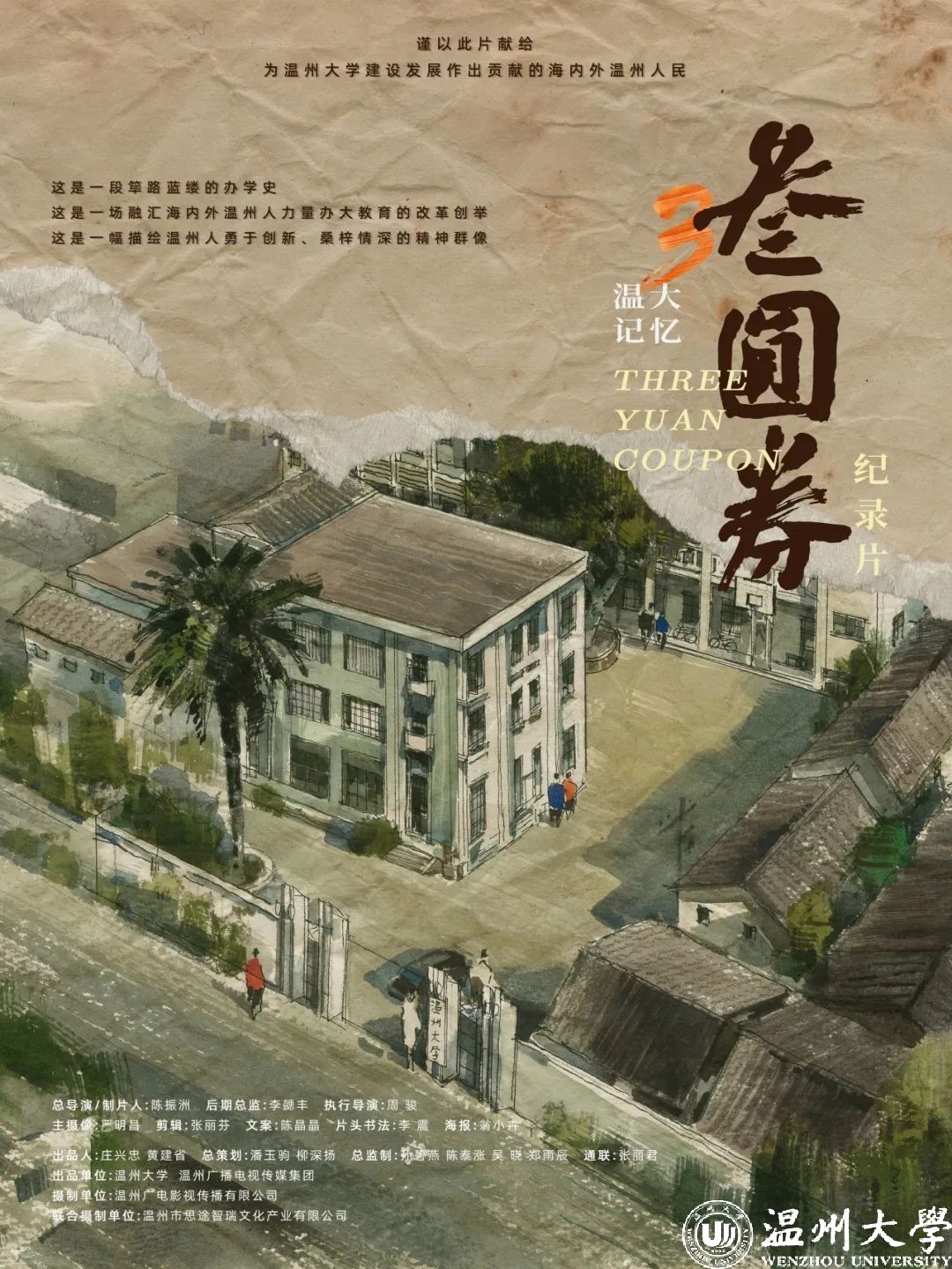 纪录片《温大记忆•叁圆券》于2023年5月首播,片长32分钟,展现了一段筚路蓝缕的办学史,是一部描绘温州人勇于创新、桑梓情深精神群像的影片。本片献给为香蕉视频 建设发展作出贡献的海内外温州人,也是一部充满着浓浓情怀的香蕉视频 九十周年校庆厚重献礼作品。